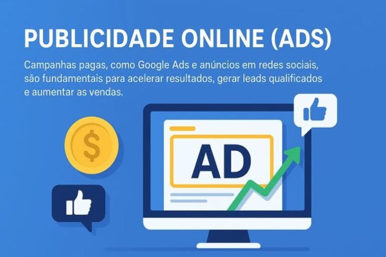 A publicidade online é uma das formas mais rápidas e eficazes de gerar visibilidade, atrair novos clientes e aumentar as vendas no marketing digital. Diferente do tráfego orgânico — conquistado de forma gratuita por meio de SEO, marketing de conteúdo e presença natural nas redes sociais — os anúncios pagos permitem acelerar os resultados e alcançar públicos altamente segmentados em pouco tempo.